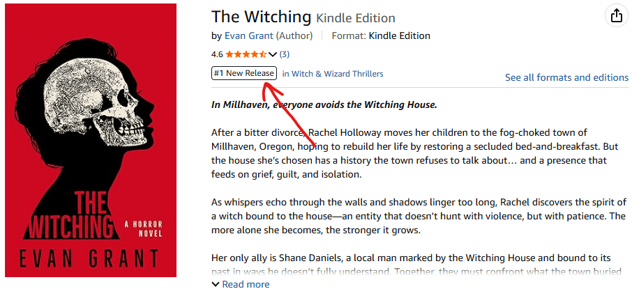Thanks to your support, The Witching briefly reached #1 New Release in its primary category--a first for me. I’m incredibly grateful to everyone who picked up a copy, left a rating, or recommended it to someone else. Indie success is never a solo effort.